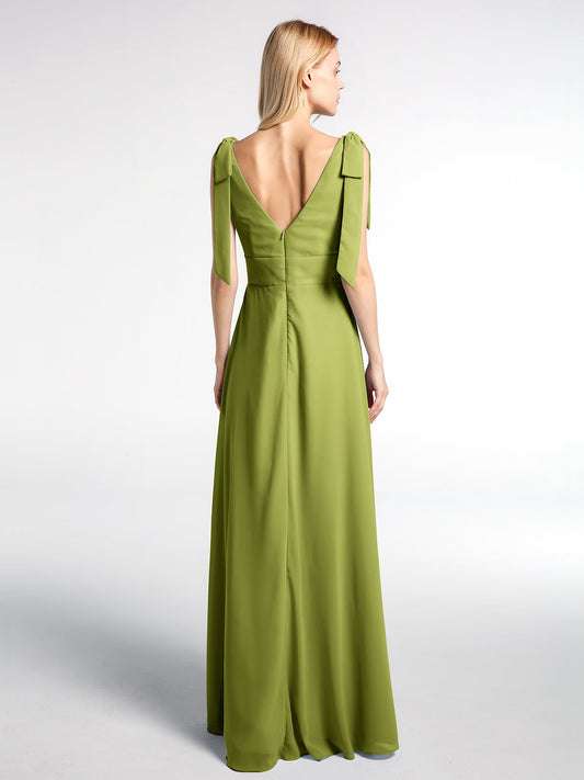Babaroni VitaVestido de dama de honor de chiffon con escote en V y espalda descubierta Trébol