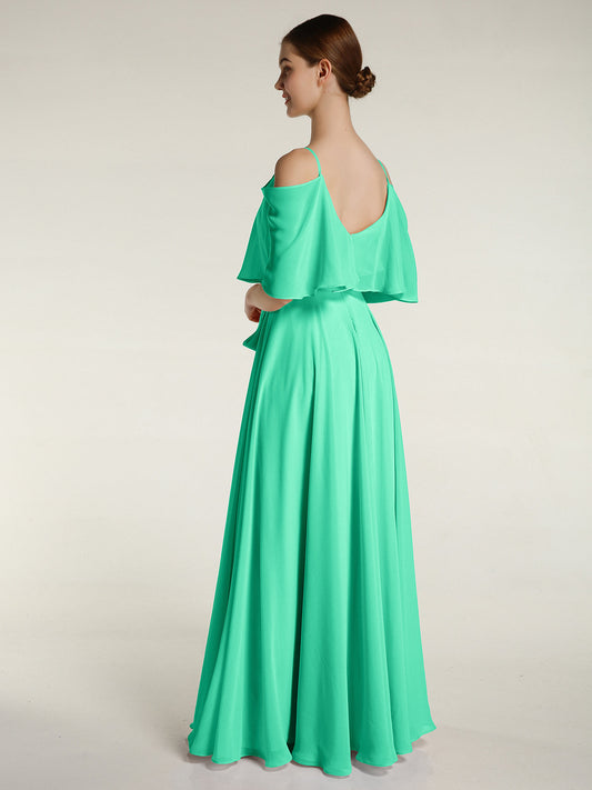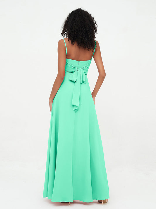 Babaroni CoraVestido largo de dama de honor de chiffon con tirantes dobles Turquesa