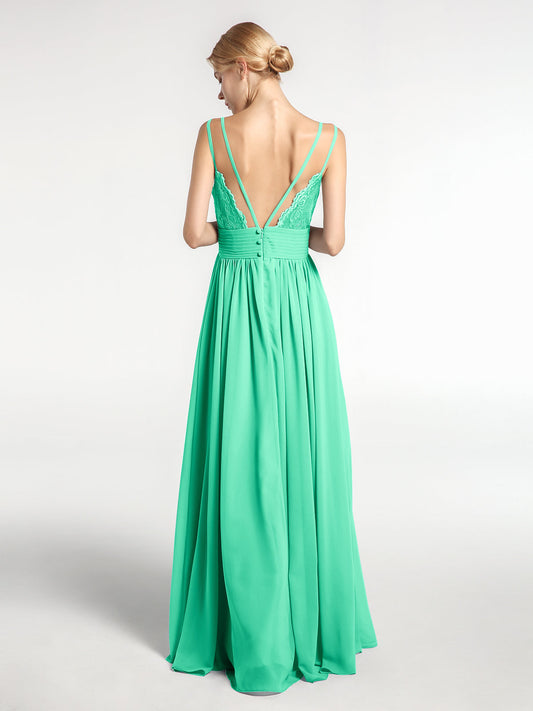 Babaroni DanaVestidos largos de chiffon con escote en V y espalda abierta Turquesa