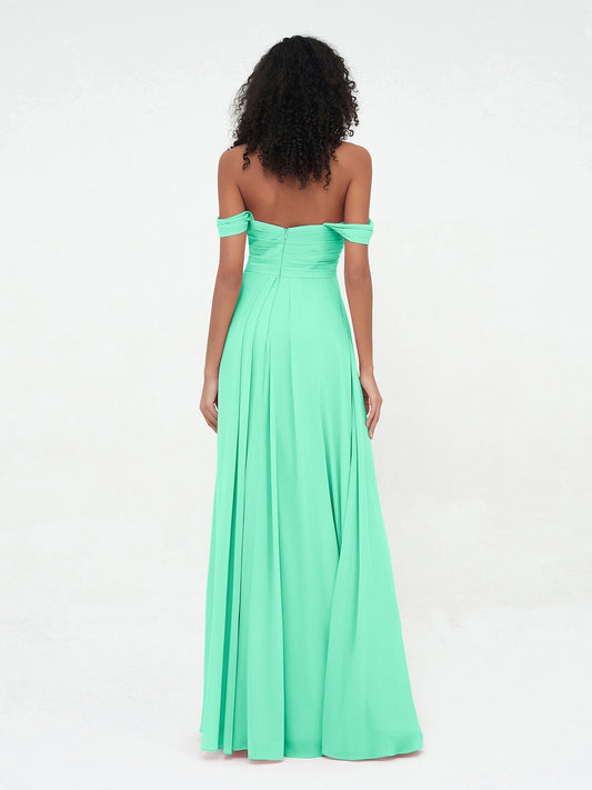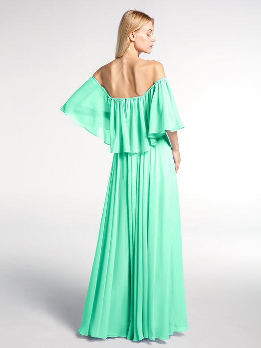 Babaroni VirginiaVestidos máximos de chiffon con falda escalonada estilo off shoulder Turquesa