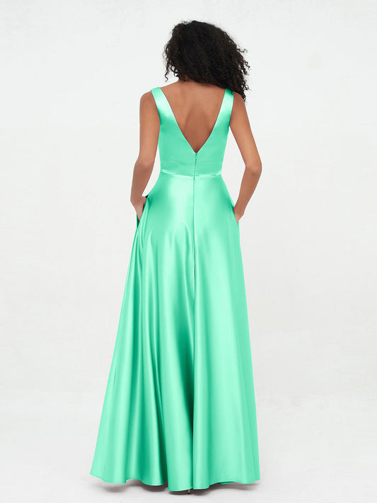 Babaroni SadeVestidos máximos de satén estilo princesa con escote en V y bolsillos Turquesa