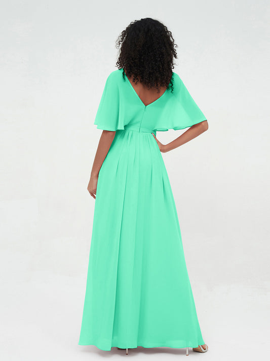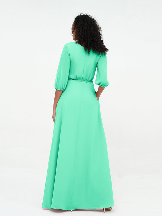 Babaroni UnaVestidos máximos de chiffon con escote en V profundo y mangas 1/2 Turquesa