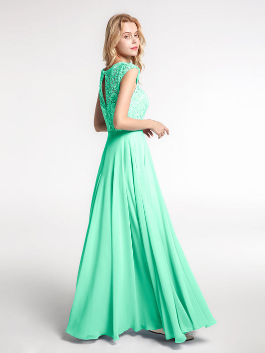 Babaroni AmyVestidos largos de dama de honor de chiffon con tirantes de cuello halter Turquesa