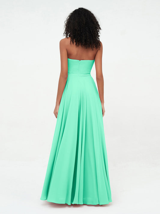 Babaroni YvonneVestidos largos de chiffon sin tirantes y escote corazón Turquesa