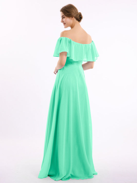 Babaroni PrudencePrudence Un Hombro Gasa Largo Cortes De Dama De Honor Turquesa