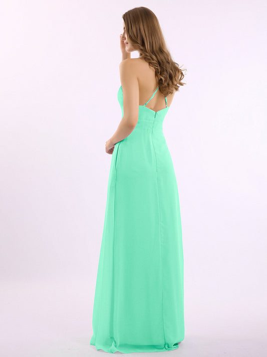 Babaroni LouiseVestidos largos de chiffon con tirantes finos en escote en V y bolsillo Turquesa
