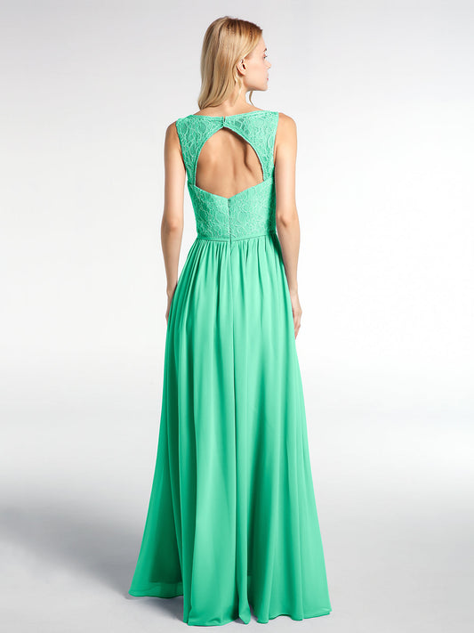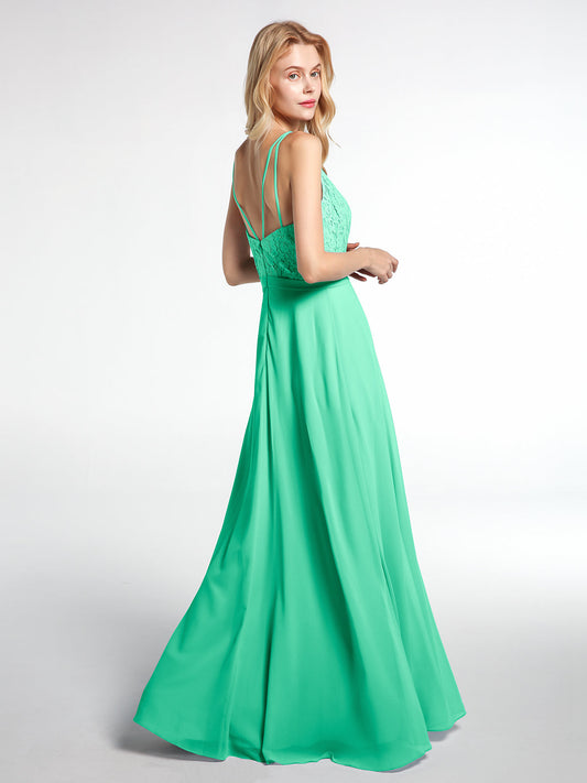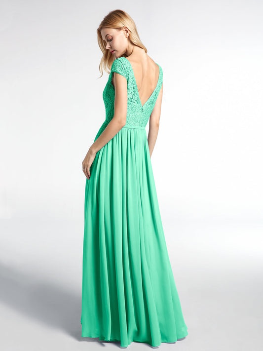 Babaroni LaraineVestido maxi con cuerpo de encaje y falda de chiffon con escote en V Turquesa