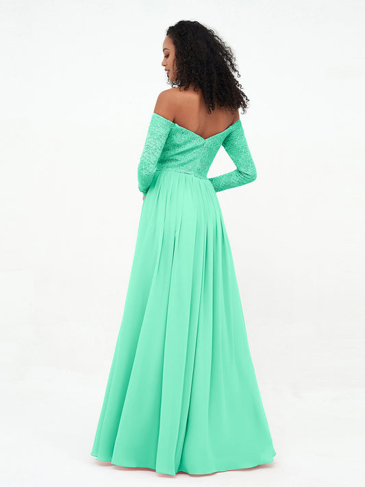 Babaroni JoannaVestidos largos de encaje con mangas largas y hombros descubiertos Turquesa