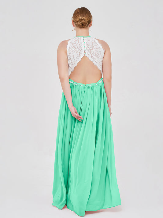 Babaroni PandoraPandora Encaje Y Gasa Cabestro Vestido Con Espalda Abierta Turquesa