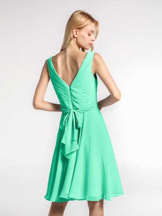 Babaroni PenelopePenelope Escote En V Gasa Corto Vestido De Dama De Honor Turquesa
