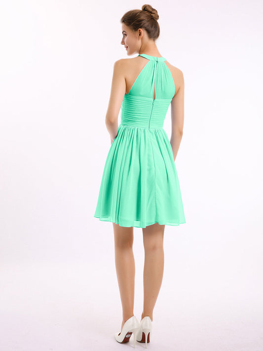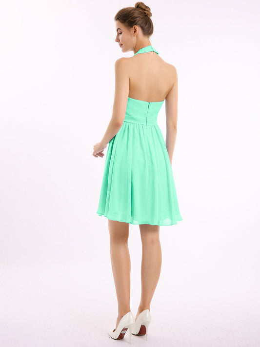 Babaroni KyreneVestidos cortos de chiffon estilo halter para damas de honor Turquesa