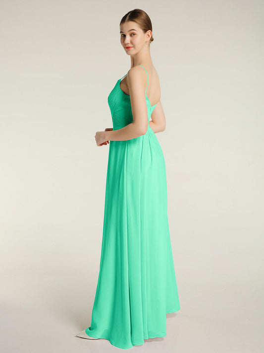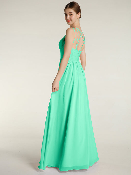 Babaroni CoraVestido largo de dama de honor de chiffon con tirantes dobles Turquesa