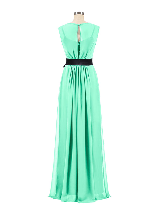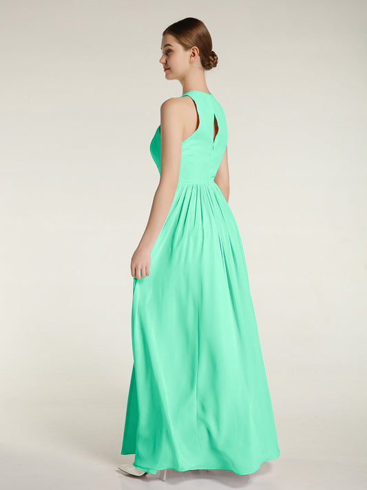 Babaroni LaurenVestidos largos de chiffon estilo princesa con abertura Turquesa