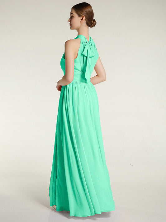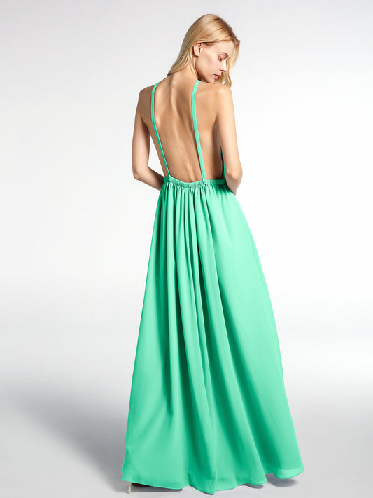 Babaroni ReneeVestido sexy maxi de chiffon con cuello halter y espalda baja Turquesa