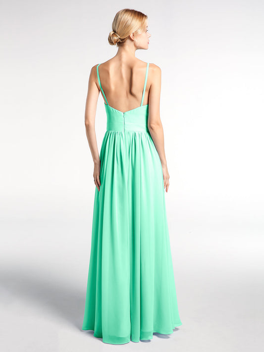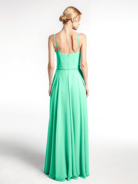 Babaroni NatalieVestido maxi simple de chiffon con escote en V y tirantes finos Turquesa