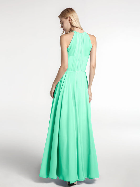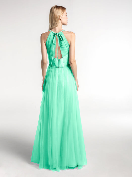 Babaroni ToveVestido maxi de chiffon con cuello halter y falda circular Turquesa