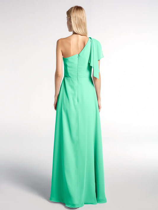 Babaroni SalomeVestido maxi de chiffon de un solo hombro con detalle en cascada Turquesa