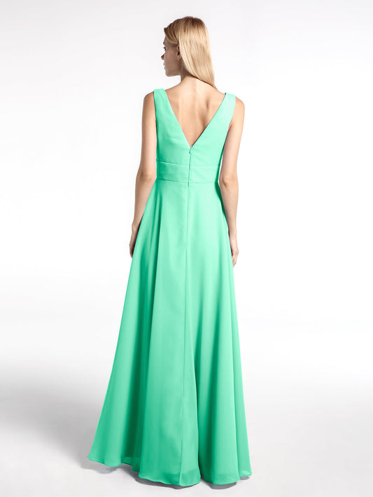 Babaroni SibylVestido largo de chiffon sencillo con escote en forma de muesca Turquesa