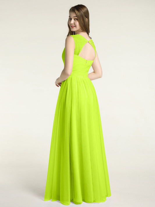 Agrega un toque de color a tu boda con nuestra impresionante colección de vestidos de dama de honor verde lima. Estos tonos brillantes y vibrantes crearán una atmósfera divertida y enérgica.