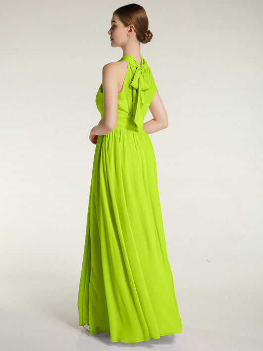 Babaroni TheraVestidos largos de dama de honor estilo halter de chiffon con espalda baja Verde Lima
