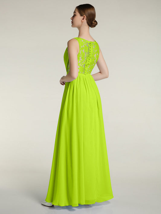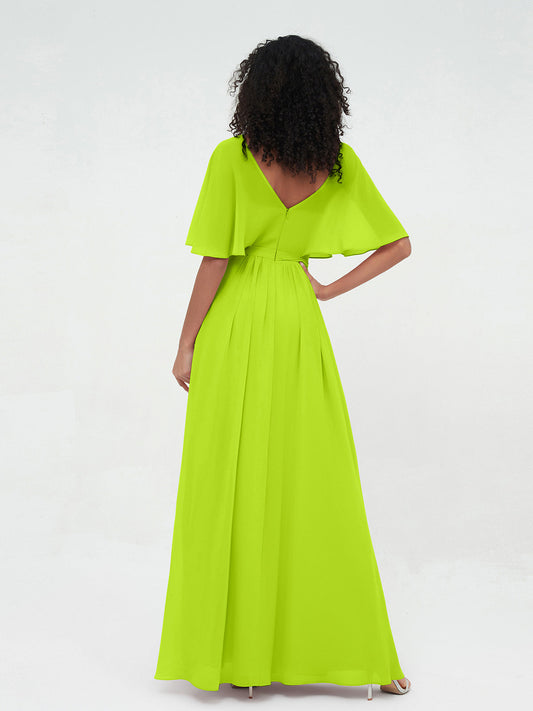 Babaroni MariaVestidos largos de chiffon de cuello en Y para damas de honor Verde Lima