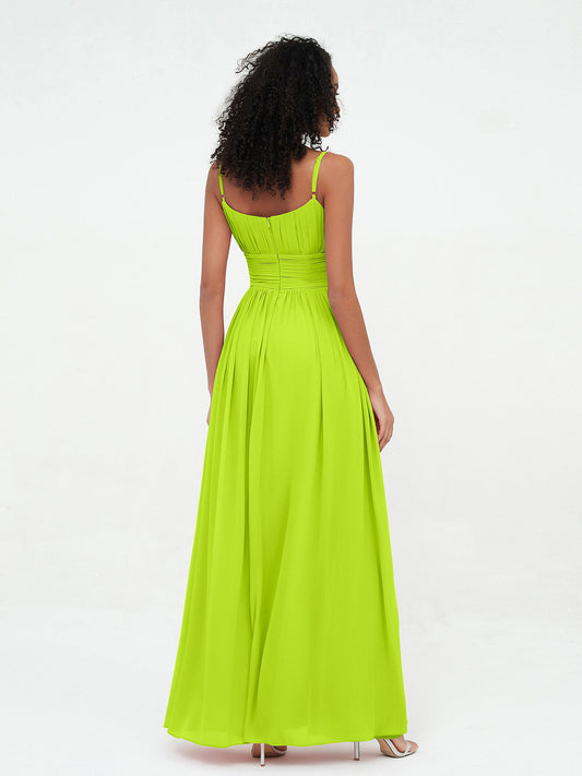 Babaroni LeeVestidos de dama de honor de chiffon con tirantes spaghetti y escote en V Verde Lima