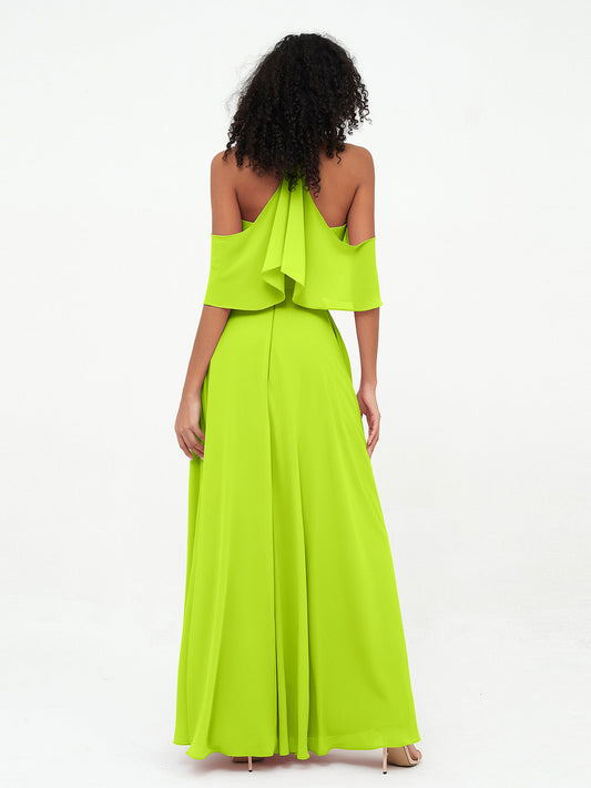 Babaroni IvyVestidos máximos de chiffon estilo halter con hombros descubiertos Verde Lima