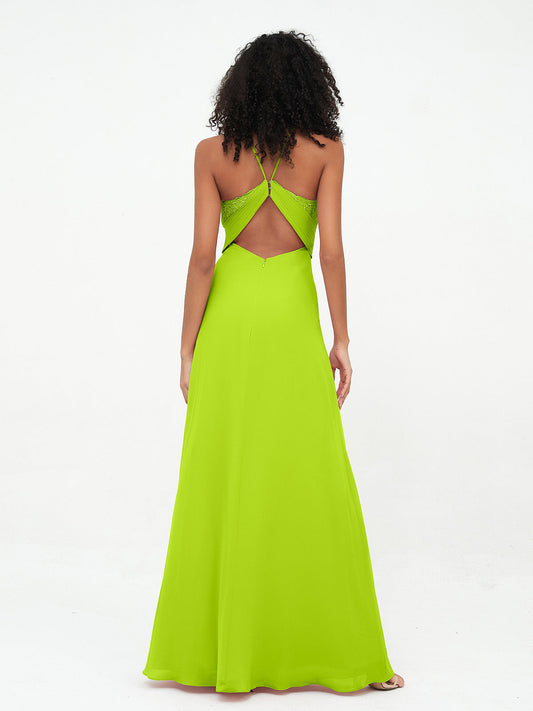 Agrega un toque de color a tu boda con nuestra impresionante colección de vestidos de dama de honor verde lima. Estos tonos brillantes y vibrantes crearán una atmósfera divertida y enérgica.