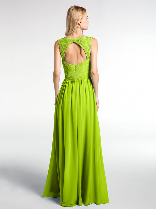 Babaroni HilaryVestido maxi de chiffon con escote en V y parte superior de encaje Verde Lima