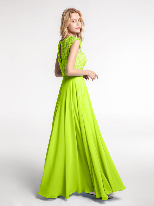 Babaroni SherryVestido maxi de encaje y chiffon con mangas cortas Verde Lima