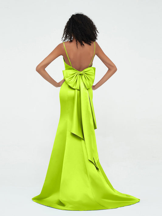 Babaroni MuseVestidos sirena de satén con tirantes spaghetti Verde Lima