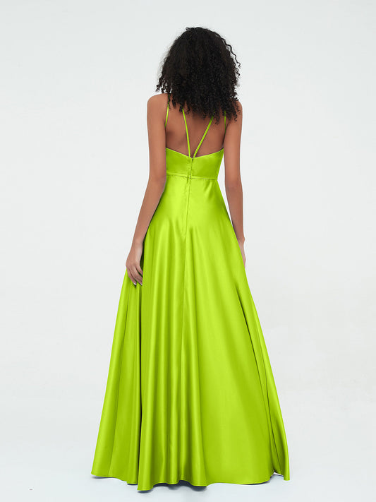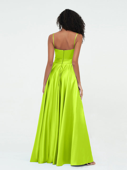 Babaroni MyrnaVestidos máximos de satén estilo A-line con tirantes spaghetti Verde Lima