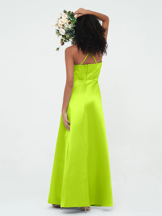 Babaroni TrudaVestidos máximos de satén estilo A-line con cuello halter y bolsillos Verde Lima