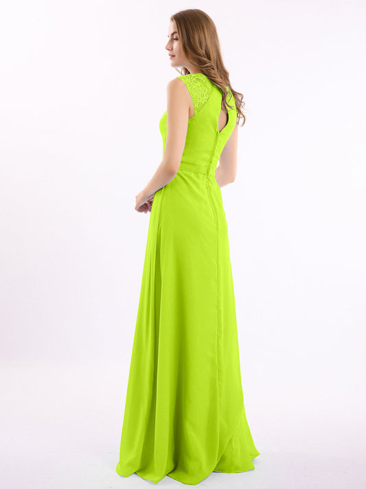 Vestidos largos de chiffon con encaje en escote en V profundo y espalda descubierta Verde Lima
