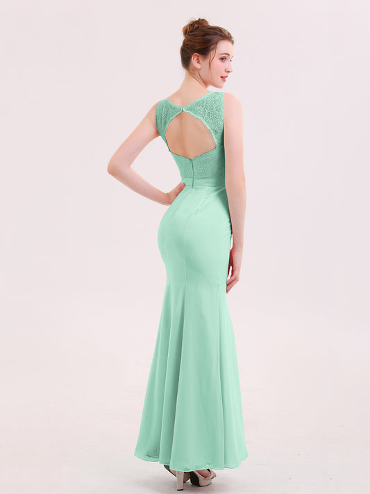 Babaroni GwendolynGwendolyn Encaje Y Gasa Largo Corte De Dama De Honor Verde Menta