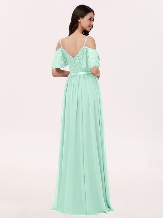 Babaroni AdalynAdalyn Escote En V Gasa Y Encaje Maxi Corte De Dama De Honor Verde Menta