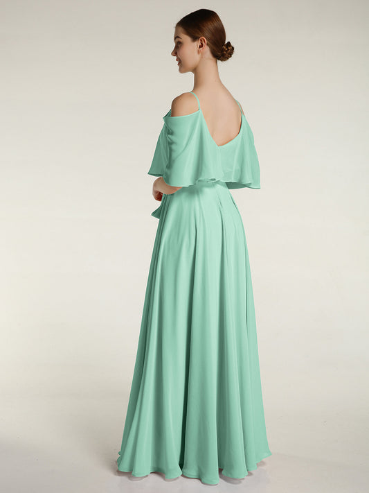 Babaroni MignonVestidos largos de dama de honor de chiffon con mangas de volantes Verde Menta