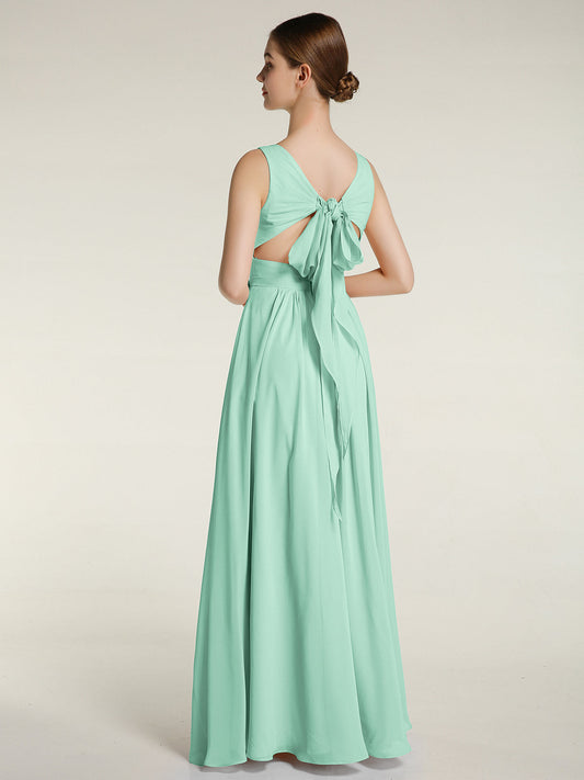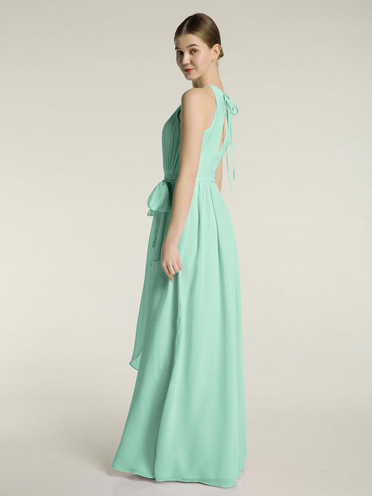 Babaroni JaneVestidos largos de chiffon estilo halter con lazo Verde Menta