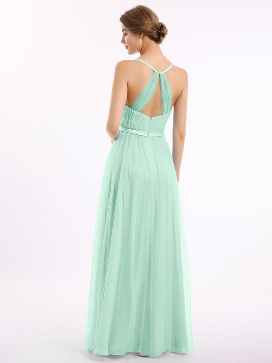 Babaroni MiriamVestidos largos de dama de honor estilo halter de chiffon Verde Menta