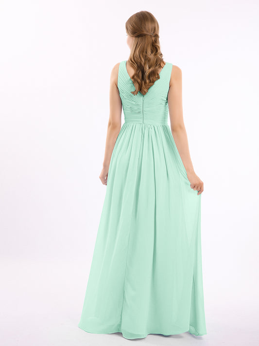 Babaroni JennyJenny Largo Vestidos De Dama De Honor Con Corpino Plisado Verde Menta