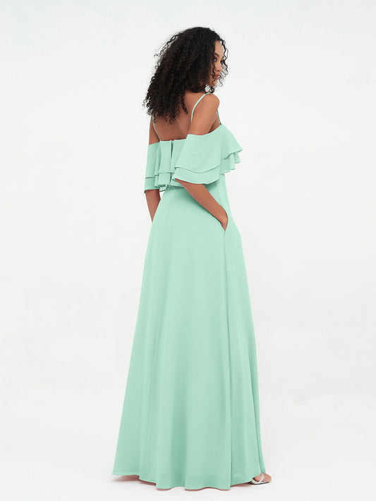Babaroni EdenEden Un Volante Hombro Largo Vestido De Dama De Honor Verde Menta