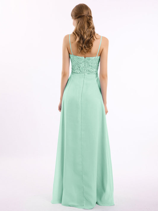 Babaroni CherryVestidos largos de encaje y chiffon con tirantes finos Verde Menta