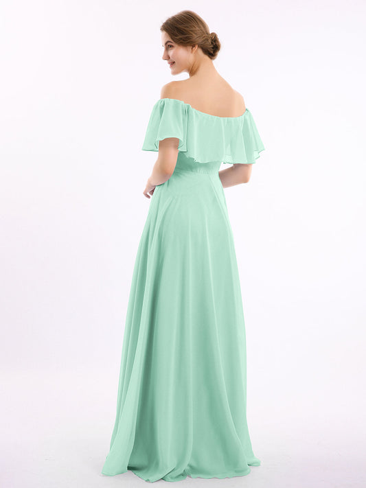 Babaroni HazelVestido largo de chiffon con hombros descubiertos Verde Menta