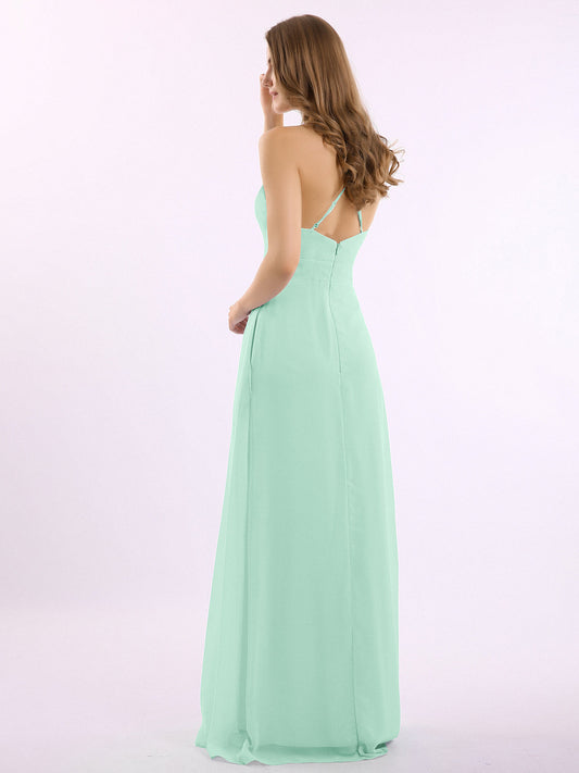 Babaroni LesleyVestidos largos de chiffon estilo halter con doble tirante Verde Menta