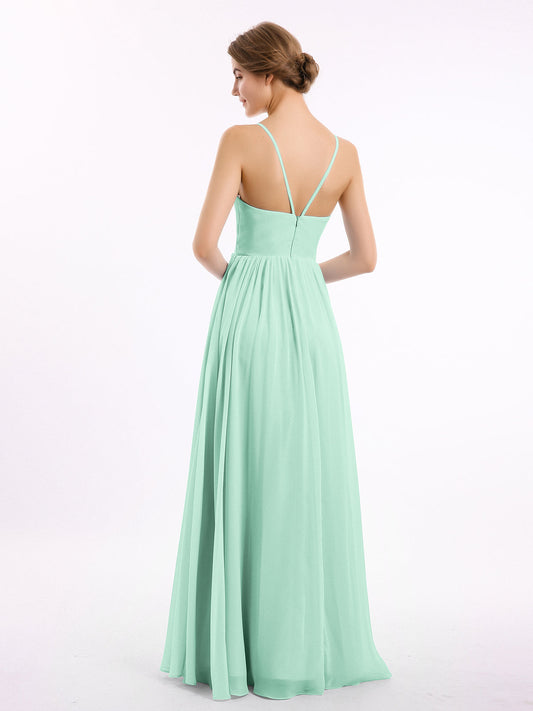 Babaroni TeaganVestidos de dama de honor de chiffon con tirantes finos y escote en V Verde Menta