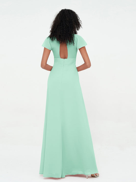 Babaroni SallyVestidos de dama de honor de chiffon con mangas cap y abertura Verde Menta