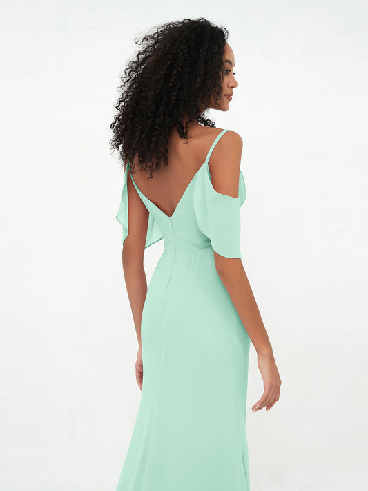 Crea una atmósfera romántica y delicada con nuestra impresionante colección de vestidos de dama de honor verde menta. Estos tonos suaves y aireados complementarán cualquier tema de boda.