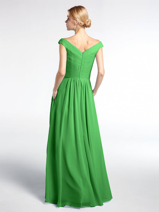 Babaroni PagVestidos estilo A-line de chiffon con escote en V y abertura Verde