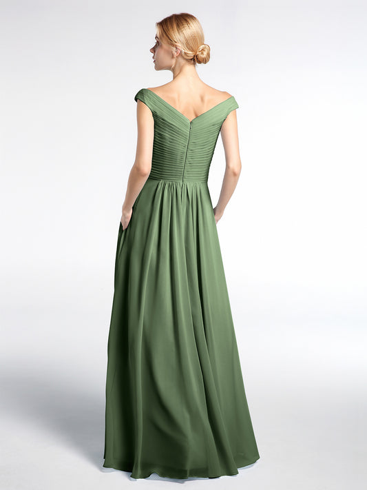 Babaroni GladysVestido maxi con escote en V y hombros descubiertos con bolsillos Verde Oliva