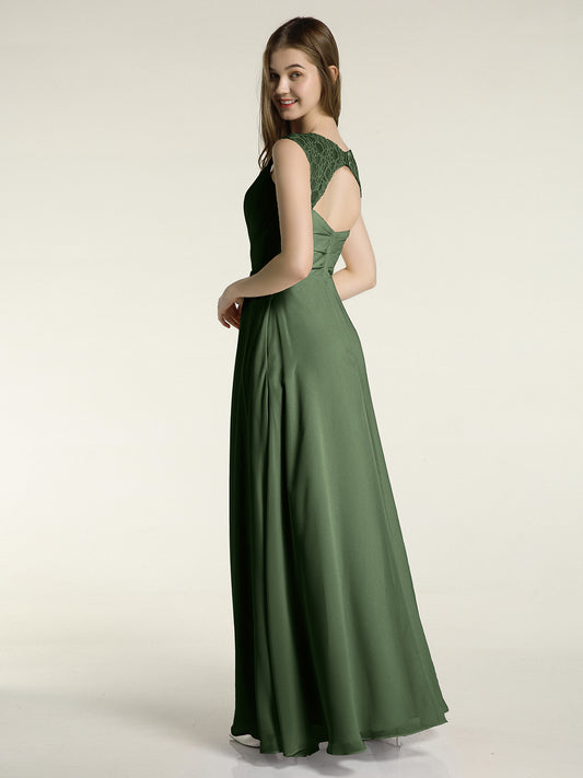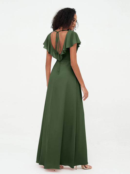 Babaroni PagVestidos estilo A-line de chiffon con escote en V y abertura Verde Oliva